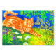 Impression de photo représentant la peinture animale de Louis Wain Cat Stalking (1860-1939). Un chat rayé orange marche dans un champ vert la nuit. Les fleurs blanches, violettes et rouges sont au premier plan. Un cadeau merveilleux pour l'art amoureux des chats et anglais.