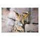 "Serval Cat" de Catherine Sherman. Le serval (Leptailurus serval) est un chat sauvage originaire d'Afrique sub-saharienne, avec de petites populations dans le sud-ouest de l'Afrique. Le nom de Serval est dérivé d'un mot portugais qui signifie "loup-cerf". Le serval a les jambes les plus longues de n'importe quel chat par rapport à sa taille corporelle. Il vit une vie solitaire et peut vivre jusqu'à 20 ans en captivité. Il a une petite tête délicate et des oreilles extrêmement grandes sur un cou allongé. Le serval a des taches et des rayures.