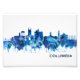 Aquarelle bleue Skyline de Columbia, une ville du centre du Missouri
