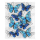 Vertical composition of réalistes, blue and white morpho butterflies on gray textured background. Morphine bleu.
