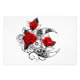 Contour, lune de croissant mécanique avec des engrenages, décoré de roses rouges avec des tiges noires spirées et feuilles sur arrière - plan blanc. Steampunk