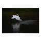 Photo d'un cygne blanc qui s'étire sur ses ailes en marchant dans une rivière peu profonde. Copyright ©2019 Kimberly J Tilley