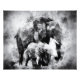 Majestic Femme Eléphant africain avec le veau Aquarelle noir et blanc