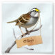 Bruant à gorge blanche (Zonotrica albicollis) dans la neige. Petite planche en bois. Nom de la Personnaliser. Idéal pour les cadeaux.