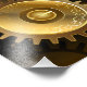 Sans joint, métal, laiton, or engrenages sur arrière - plan foncé rouillé. Style Steampunk.