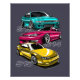Design Anime Style qui dépeint l'évolution du châssis du légendaire Silvia, l'image montre les modèles S13, S14, S15. Parfait pour les amateurs de voitures japonaises et JMD!