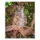 Perched among twisted branches, this owl commands attention with its luminous golden eyes. Patterns of feathers and bark create a mesmerizing tapestry of textures and tones. The scene evokes ancient forest magic, capturing the quiet authority of a true nocturnal guardian.