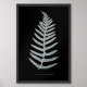 Dessin de fougère. Polypodyum Vulgare. Illustration botanique noire et blanche du XIXe siècle d'une fougère aux accents bleu turquoise. Effet de rayons X. Arrière - plan noir et contour ou contour blanc. Couleurs inversées négatives.