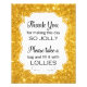 Ce faux panneau de buffet brillant or sera le complément parfait à la barre de bonbons à votre douche nuptiale! Il dispose d'un arrière - plan doré brillant avec un cadre découpé avec la phrase "Merci pour faire ce jour si joyeux S'il vous plaît prendre un sac et le remplir de lollies".