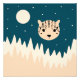 Ciel nocturne de grand chat, illustration en couleurs pastel brut d'un visage de félin dans le ciel pleine lune sur une forêt