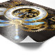 Cadran d'antiquités avec or et lances en laiton, décoré de libellules mécaniques sur arrière - plan brun rayé. Steampunk.