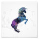 Une silhouette de cheval d'élevage, recouverte d'un magnifique look "peint" dans les bleus et les violets abstraits, contre un arrière - plan rustique patiné de grains de bois blanc.