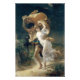 The Storm by Pierre Auguste Cot, oil on canvas 1880, est un tableau classique de deux jeunes gens qui courent pour s'abriter d'une tempête, illuminé d'une lumière éclatante sur un paysage forestier assombri, un morceau de tissu qui les protège contre la pluie. Cot allie un réalisme moderne qui borde la photographie avec l’inspiration de sources de l’antiquité classique, comme le costume berger du monde antique et le voile diaphane de la fille. The Storm a été commandé comme une pièce d’accompagnement à l’autre grand tableau de Cot, Springtime, qui est devenu extrêmement célèbre en Europe et en Amérique. Pierre Auguste Cot (1837 - 1883) est un peintre français académique classique qui fréquente l'Ecole des Beaux-Arts et étudie sous Alexandre Cabanel et William-Adolphe Bouguereau. Cot exposait très bien dans le Salon français et devint extrêmement populaire, remportant de nombreux prix dont la Légion d'honneur française. Cot excellait dans la manière académique du 19ème siècle, créant des compositions figuratives classiques modélisées, soigneusement exécutées, puisées dans la vie et sources de l'antiquité classique. Cot est mort prématurément à l'âge de 46 ans, commémoré par un monument dans la ville de sa naissance. Après un siècle de négligence, l'intérêt s'est ravivé dans les peintres de la tradition académique du 19ème siècle.