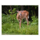 Un jeune cerf sort des bois pour manger un morceau.