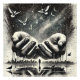 Cette oeuvre saisissante d'art surréaliste représente des mains libérant doucement des oiseaux dans le ciel, symbolisant la liberté, la libération et l'acte de lâcher prise. Rendu en noir et blanc avec une texture lavée, l'oeuvre évoque un lien émotionnel profond avec la nature et le désir humain de libération. Les oiseaux, qui s'envolent dans le vaste ciel, représentent l'espoir, la transformation et les possibilités infinies de l'avenir. Parfait pour ceux qui recherchent une pièce réfléchie et émotionnelle qui explore les thèmes de liberté, de libération, et la beauté de la nature dans un style minimaliste et abstrait.