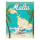 Malte plage & carte affiche de voyage avec un avion de mer atterrissant sur une plage et une carte de l'île.