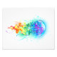 Grande méduse irisée, artistiquement dessinée, brillante, avec de longues tentacules sur le blanc, peinte sur l'arrière - plan multicolore. Méduse arc-en-ciel.
