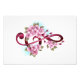 Pink treble clef with delicate, detailed pink Japanese cherry blossoms against white background painted over with light blue paint Blooming pink sakura.