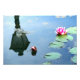Photo d'un nénuphar et d'un bourgeon avec un reflet surprenant dans l'eau d'un lampion.