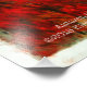 Dans un ciel nocturne avec quelques nuages est une pleine lune qui est rouge de couleur et s'élève au-dessus d'un ensemble de montagnes et de collines. Une corneille est perchée sur une branche d'un bouleau mort qui donne sur la forêt d'arbres rouges feuillus. Copyright de l'oeuvre ©2018 Kimberly J Tilley.