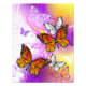Orange, papillons monarques détaillés sur la lumière, violet, pittoresque, arrière - plan peint.