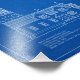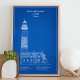 Cette illustration du phare de Big Sable Point est présentée dans le style d'un plan bleu classique, transformant la structure historique en quelque chose qui semble à la fois technique et intemporel. Sur un fond bleu riche, le tracé net reflète les plans de dessin architectural, mettant en évidence les proportions précises et le caractère structurel du phare.
