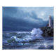 Cette belle illustration artistique représente le phare de Boston. Il domine une mer tumultueuse. Les vagues étincelantes reflètent la lumière de la lune qui s'élève des nuages sombres et orageux. C'est une oeuvre d'art parfaite pour les amateurs d'océan et de phare. L'impression est une reproduction d'une peinture à l'huile originale de Gina Femrite.