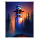 Cette magnifique image nocturne capture la beauté et la magie d'une tour entourée d'arbres. Les couleurs tamisées et les coups de pinceau doux créent un sentiment de paix et de tranquillité, tandis que l'atmosphère mystérieuse invitation le spectateur à explorer les secrets cachés de la forêt.