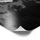Photo en noir et blanc d'une section de la chaîne Tatoosh, dans le parc national du Mont Rainier, avec des groupes de nuages flottant derrière. La position du soleil est derrière les montagnes, il met en évidence des sections de nuages et garde la chaîne de montagnes à l'ombre. Des bancs de neige estivaux s'accrochent encore aux pierres apparentes des montagnes. Copyright ©2023 Kimberly J Tilley. zazzle.com/store/developingnature