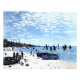 Dans la captivante peinture "Plage à Sainte-Adresse", les spectateurs se rendent dans la pittoresque ville côtière de Sainte-Adresse, près du Havre en Normandie. La scène se déroule avec une vue panoramique sur la plage de sable, baignée par la douce lumière dorée du soleil. Sur fond de gigantesque étendue de ciel et de mer, les figures se promènent le long du rivage, leurs silhouettes ponctuant l'horizon. Les enfants jouent dans le sable, tandis que les voiliers parsèment les eaux, leurs voiles célestes attrapant la brise. La maîtrise de la lumière et de la couleur de l'artiste est à l'honneur, puisqu'il capture les teintes changeantes de la mer et du ciel. L'eau brille dans les tons bleu et vert, tandis que les nuages dérivent paresseusement au-dessus, projetant des ombres fugaces sur la plage en contrebas. Par ses coups de pinceau audacieux et son observation de la nature, l'artiste insuffle à la scène un sens de l'énergie et de la vitalité, invitant le spectateur à s'immerger dans la beauté intemporelle du bord de mer. "Plage de Sainte-Adresse" est plus qu'une simple peinture, c'est une fenêtre sur un monde de soleil, de mer et de sable, où les plaisirs simples de la vie sont célébrés dans toute leur splendeur.