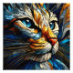 Un portrait de la tête d'un beau chat est présenté dans un style abstrait de vitrail. Les tons bleus, jaunes et turquoise se tissent dans cette composition artistique, capturant le charme du félin dans un décor fascinant et élégant.