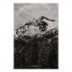Une photo de paysage noir et blanc d'un ciel couvert de nuages essayant de s'enrouler autour d'une montagne enneigée. Les arbres couvrent le paysage environnant du sommet de montagne plus haut. Copyright ©2023 Kimberly J Tilley. zazzle.com/store/developingnature