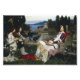 Saint Cecilia patron de la musique repose sur une chaise tandis que deux anges ailés la serenade avec de la musique de leurs violons. Peintures d'art vintage de John William Waterhouse.