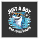 Cute design featuring a humorous quote about sharks, celebrating a boy's affection for these fascinating sea creatures.