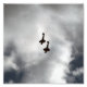 Photo atmosphérique de deux Spitfire de la RAF plongeant vers une cible invisible.