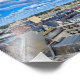 Peinture style d'une vue panoramique d'Oxford mettant en valeur son mélange emblématique d'architecture historique et moderne. Les flèches et dômes de l'église s'élèvent au-dessus du paysage urbain sous un ciel bleu partiellement nuageux, capturant le charme intemporel de cette ville universitaire renommée.