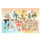 Une scène lumineuse et colorée offre une vue spectaculaire de la Californie du Sud - personnages farfelus sur la plage et le désert de SoCal présentant Los Angeles, Orange County, San Diego, Père Noël Barbara, Riverside, Palm Springs, El Centro, Anza Borrego et Joshua Tree parcs ainsi que les villes frontalières de Tijuana, Tecate et Mexicali. Cette charmante scène a tout - un surfeur pend dix tandis qu'un orque saute de l'eau, des animaux de zoo accueillent les touristes, les amateurs de vin font un toast comme un T-Rex rugit un défi et un randonneur est remarqué par un OVNI et bien plus encore...