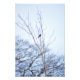 Une photo d'un spectacle rare, un oiseau-noir à aile rouge. L'oiseau en danger est perché en hauteur dans un arbre. C'est l'automne et les arbres ont perdu tous leurs feuilles. Le ciel est dégagé des nuages et est une teinte bleu clair doux. Copyright ©2021 Kimberly J Tilley. L'aile rouge s'éteint parce que son habitat est constamment construit pour les centres commerciaux et les complexes immobiliers. La plupart des zones humides ne sont aujourd'hui qu'une petite bande au bord des restaurants, centres commerciaux, maisons, et n'ont rien d'autre qu'un ponceau de ville. Et puis la zone souffre d'inondations parce que la gestion naturelle de l'eau a été détruite.