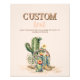 Créez une fête surprise pour la fille d'anniversaire qu'elle n'oubliera jamais avec cette Blush Pink Cowgirl Rodeo Party Cactus Boots Signer pour la fille d'anniversaire de l'ouest du pays! Cowgirl up avec cactus, bottes, une roue de wagon et un thème élégant et amusant pour les 16ème, 21ème, 30ème, 40ème. 50e ou toute année cadeau d'anniversaire, idée cadeau d'anniversaire ou cadeau Valentines pour votre petite amie ou votre femme! Les couleurs turquoises et bronzantes avec des pops de fleurs de corail sont parfaites pour un invitation de bottes de cowgirl ou une douche nuptiale rustique aussi! Personnalisez le texte pour lire ce que vous voulez. Message pour plus de personnalisation !