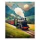Cet agrandissement photo est muni d'un vieux train à vapeur contre une majestueuse vue sur la montagne.