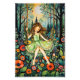 Une jeune fille en robe verte se balade au milieu d'une forêt florale vibrante, les yeux fermés sous la douce lueur d'une pleine lune. La scène est fantaisiste et onirique, remplie de fleurs colorées et de verdure luxuriante. Photoshop Art numérique CS6