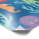 Monde sous-marin avec sous-marin, un hippopotame en orange, étoiles de mer, crack, méduse, poissons et plantes aquatiques