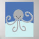 Impression d'art pour nurserie de la pieuvre de la vie marine bleue et grise, 4ème d'une série de 4. Voir les impressions correspondantes dans ma boutique Zazzle.