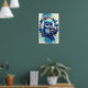 Impression sur poster - Jeune - Maman et bébé hibou - Design bleu et violet avec des hiboux, des fleurs et un papillon. Idéal pour la nurserie, les enfants et les amoureux des animaux.