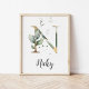 Ajoutez une touche de charme naturel à la chambre de votre bébé avec cette impression de nom de nurserie de verdure. Avec une verdure délicate et un texte de nom personnalisable, c'est la décoration personnalisée parfaite pour une nurserie sereine et élégante.