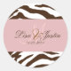 autocollants de mariage Brown zèbre imprimé monogramme (scellants d'enveloppe), teintes d'accent rose. Idéal pour un usage quotidien. Entièrement personnalisable. Les polices et les couleurs arrière-plan peuvent être facilement changées. Copyright © 2009 PixDezines.com et PixDezines sur zazzle.com