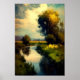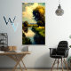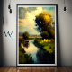 Stream watercolor images painting art, drawing of a river from nature, in the style of pixelated landscapes and traditional oil painting.