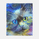 Impressionist Cat Portrait Blue Yellow Black Fleece Blanket