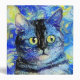An artistically designed and digitally painted, abstract impressionist starry night style portrait of a cute and fluffy cat.