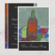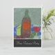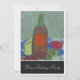 A bottle of red wine sits on a blue and white chequerboard tablecloth in this impressionist still life. Surrounding the green glass bottle are bunches of red and white grapes, a wedge of cheese and a clear glass filled with red wine. The customizable text can easily be changed to suit your own needs. From my original digitally created image.